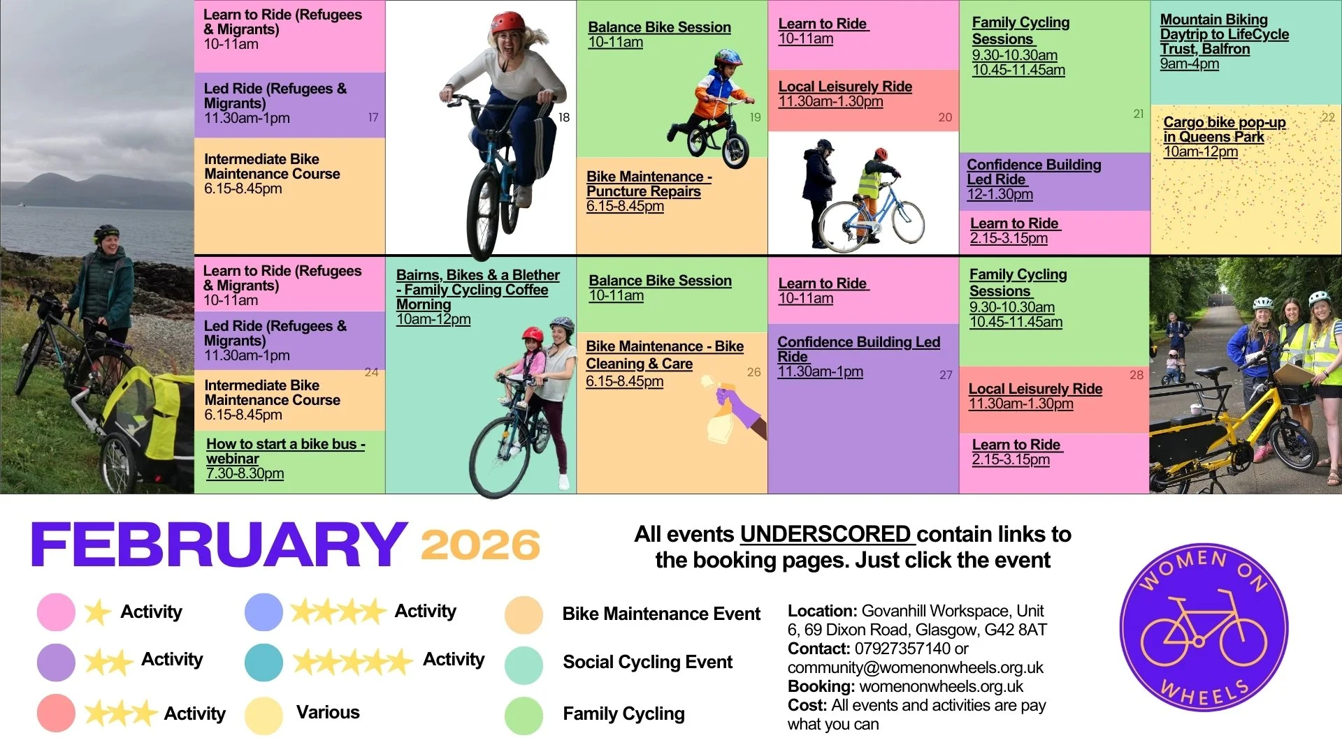 If you do not know which level you are at then contact Women on Wheels and we can talk it through with you and advise on the correct session to book.