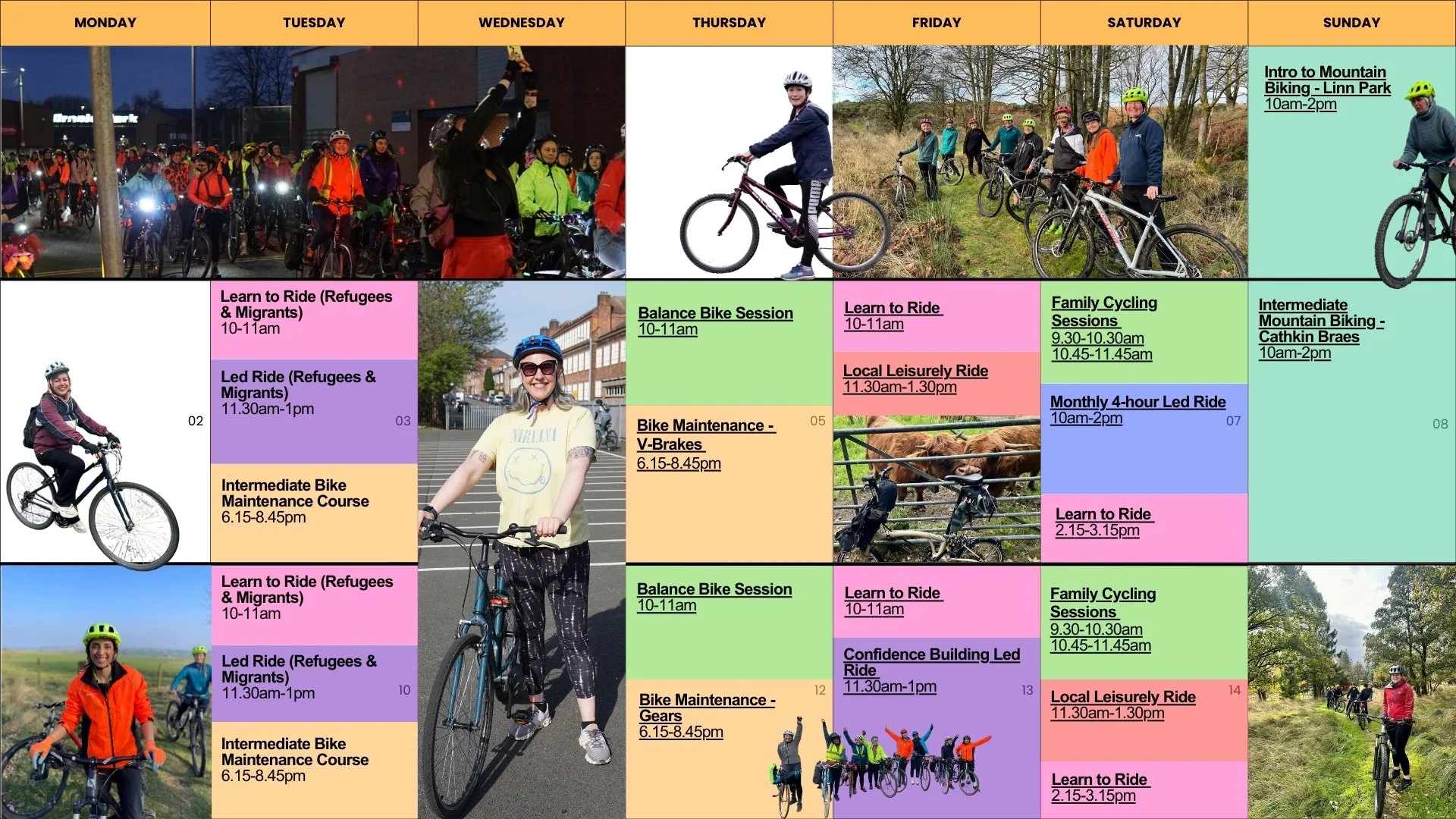 At Women on Wheels, our services offer everything you need to learn how to cycle, explore Glasgow with longer rider, commute with confidence and learn bike maintenance. Join our community of like-minded women and experience the joy of cycling with us.